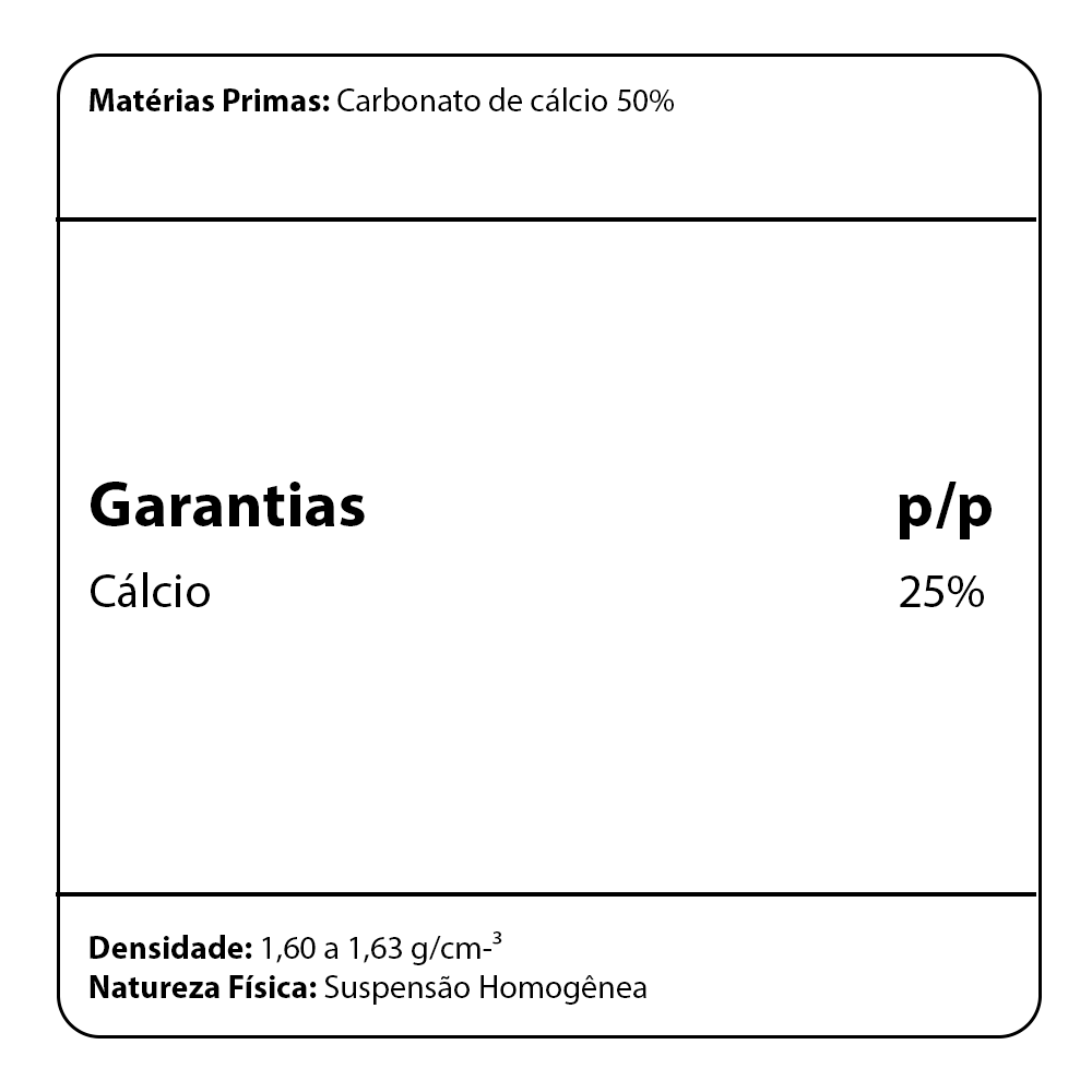 Descrição Características Vídeo Produto via solo composto por 25% de Carbonato de Cálcio, indicado para suprir a nutrição das plantas. Pode ser utilizado em adubações de cobertura, fertirrigação, drench ou pulverizações foliares, ajudando a corrigir deficiências de cálcio e fortalecendo o desenvolvimento vegetativo. Indicação: Citrus, Hortaliça, Fruticultura em geral, Cana-de-Açúcar, Cereais, Café e Ornamental. Aplicação: Via foliar ou solo. Dosagem: Soja, milho, sorgo, trigo, arroz, feijão: 1 a 2 litros por ha; Cana-de-açúcar, café e frutíferas: 4 a 6 litros por ha; Hortaliças: 2 - 4 litro por ha; Categorias: Fertilizante Foliar Categorias: Fertilizante Solo Características: Desenvolvimento Vegetativo Categorias: Nutrientes