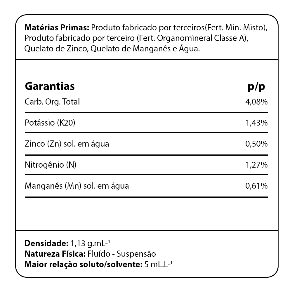 Descrição Características Vídeo É a vitamina que as plantas precisam. É um produto que estimula toda a bioquimica da planta, aumentando todo o vigor vegetativo, tamanho da folha, produção de flores, tamanho dos frutos e pegamentos, de plantas afetadas pela doença do Greening. Ele estimula a energia vital que ela precisa para recuperação dos vasos do Floema. Ná pratica, funciona estimulando radicelas, que são pequenas raizés que fazem a absorção de nutrientes e água e solo. Benefícios: Crescimento Equilibrado: Estimula o desenvolvimento saudável das raízes e da parte aérea das plantas. Resiliência a Estresses: Ajuda as plantas a se recuperarem de situações como geadas, granizo e falta de oxigênio no solo. Aumento da Produtividade: Contribui para uma produção mais robusta e consistente. Versatilidade de Uso: Ideal para diversas culturas e condições climáticas. Aplicação: Deve ser aplicado regularmente conforme as necessidades da sua cultura, principalmente em períodos críticos, garantindo plantas mais fortes e resistentes. Sua aplicação pode ser feita Via Folha ou através de fertirrigação, misturando o produto em água seguindo a dosagem. Formulação: Doses maiores e mais concentradas, formuladas para atender ao manejo de grandes áreas agrícolas. Dosagem: Planta de 0 a 1 ano: 1 litro para 2000 litros de água. Plantas de 1 a 4 anos: 1,5ml por planta. Plantas de 5 a 10 anos: 2ml por planta. Plantas acima de 10 anos: 2,5ml por planta. Hortifruti: 2ml de produto por Litro de água Intervalo de aplicações: Aplicação quinzenal durante 6 meses e após esse período, aplicações mensais. Categorias: Fertilizante Foliar Categorias: Greening Características: Radicelas Características: Nutrição